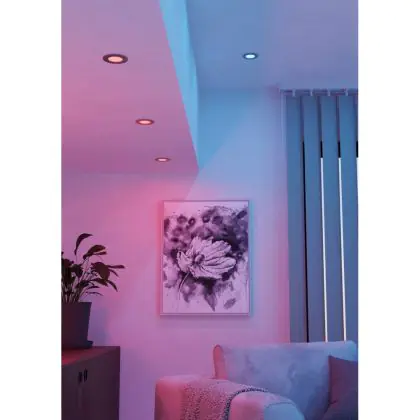Der LED-Einbauspot kommt mit der Farbtemperatur 2700K - 6500K Tunable White + RGB daher. Als Faustregel gilt: Je niedriger der Kelvinwert, desto gemütlicher wirkt das Licht.