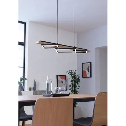 Eglo Pendelleuchte Boyal Holz Schwarz, Braun 42W 3500lm - 830 Warmweiß | Dimmbar