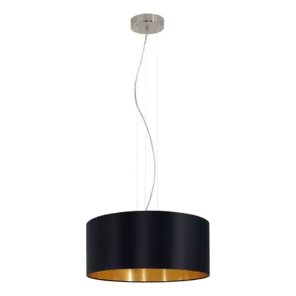 Die Eglo Pendelleuchte Maserlo Stahl Satin-Nickel | Geeignet für 3x E27 sorgt für eine angenehme Ausleuchtung und punktet durch modernes Design. Diese Leuchte ist speziell zur Montage an der Decke vorgesehen.