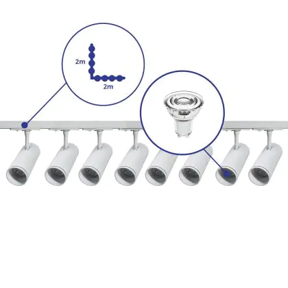 | Herstellername | Complete L shaped 1-Phase Track Set White incl. 8x Spot fixture + GU10 2700K 3W Dim – 2 x 2 meters i | |