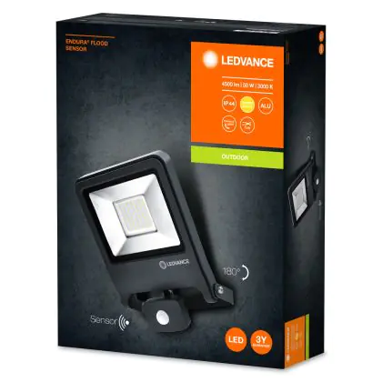 Der Ledvance LED-Scheinwerfer Endura Schwarz 50W 4500lm 100D - 830 Warmweiß | IP44 - Bewegungs- und Lichtsensor - Symmetrisch ist ein Scheinwerfer und strahlt Licht in der Farbtemperatur 3000K - Warmweiß aus. Zudem punktet der LED-Scheinwerfer durch eine lange Lebensdauer.