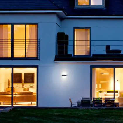 Die elegante Außenleuchte überzeugt nicht nur mit hochqualitativen Licht, sondern auch mit einem geringen Strombedarf von nur 11 W.