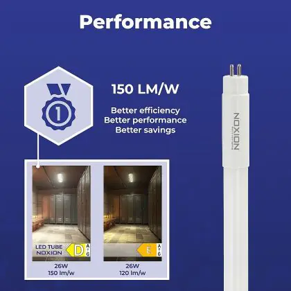 Aufgrund des geringen Energieverbrauchs von nur 26W sparen Sie mit der LED-Röhre von Noxion bis zu 90 % Ihrer Energie - sowie Instandhaltungskosten gegenüber einem konventionellen Modell.