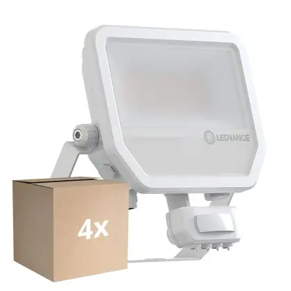 Mehrfachpackung 4x Ledvance LED-Scheinwerfer Aluminium Weiß 41W 6000lm 100D - 840 Kaltweiß | IP65 - Bewegungs- und Lichtsensor - Symmetrisch