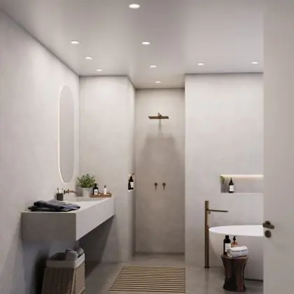 Die IP-Klasse gibt das Schutzlevel der Leuchte gegenüber Fremdkörper und Berührungen (erste Ziffer) und gegen Wasser (zweite Ziffer) an. Je höher die Ziffern sind, desto robuster und wasserabweisender ist die Leuchte. Ab dem IP44 ist der Spot unter bestimmten Bedingungen auch außen verwendbar - das Prädikat “wasserdicht” bekommt ein Einbaustrahler erst mit einem IP von mindestens 54.