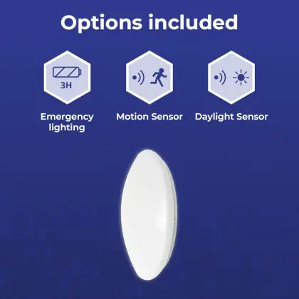 Beschreibung Noxion LED-Wand- und Deckenleuchte Corido V2 Weiß 12/16/20W 2000lm 830-840-865 CCT | IP44 - Bewegungs- und Lichtsensor - Not 3H