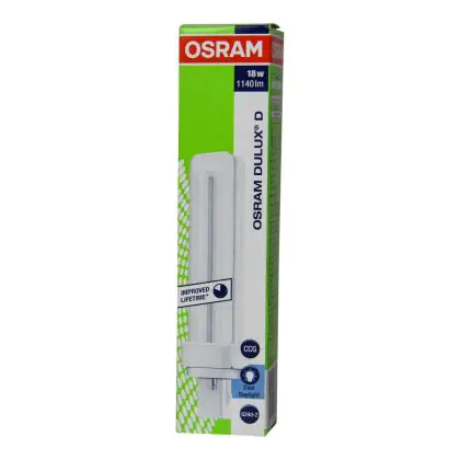 Die Osram Dulux D 18W - 865 Tageslichtweiß | 2-Pins ist eine Kompaktleuchtstofflampe von Osram. Das Produkt mit 2 Pins strahlt Licht in der Farbtemperatur 6500K - Tageslichtweiß aus und punktet durch eine lange Lebensdauer.