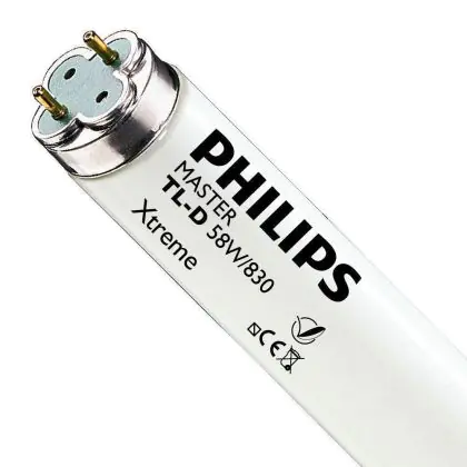 Die Philips MASTER TL-D Xtreme 58W - 830 Warmweiß | 150cm ist eine Leuchtstoffröhre mit einer Länge von 1500 mm. Das Produkt hat einen Durchmesser von 28 mm. Die Röhre strahlt Licht in der Farbtemperatur 3000K - Warmweiß aus und punktet durch eine lange Lebensdauer.