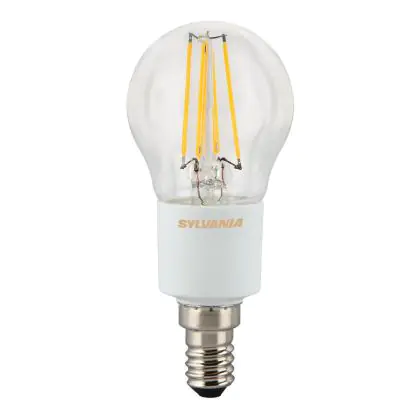 Sylvania ToLEDo Retro Ball E14 ist eine moderne LED-Lampe. Dank intelligenter LED-Technik bietet sie einen Ersatz für konventionelle Lampen von 40 Watt und damit eine Energieeinsparung von 90 %. Darüber hinaus hat sie einen gängigen E14-Sockel und ein ansprechendes Retro-Design. Sie spendet extra warmweißes Licht mit einer Farbtemperatur von 2.700 Kelvin.